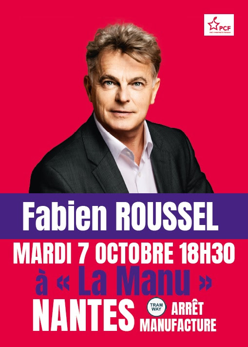 Nous aurons le plaisir d’accueillir Fabien Roussel, secrétaire national du PCF, le mardi 7 octobre. Après la visite des Chantiers navals de Saint-Nazaire, il sera présent à Nantes pour un grand moment d’échanges :